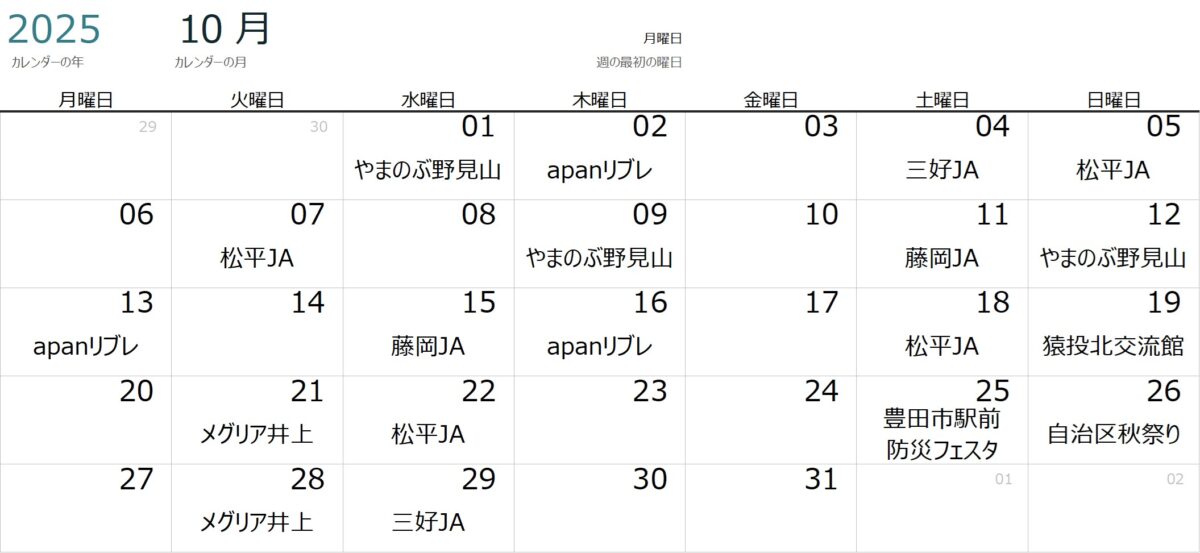 出店スケジュールのご案内